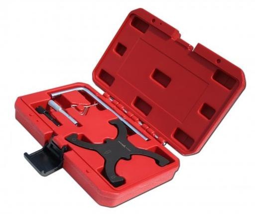Zestaw obejmuje wymianę paska rozrządu i regulacje rozrządu dla silników benzynowych Forda 1.6Ti - VCT. W zestawie znajduje się płyta ustawienia VCT, blokada koła zamachowego, wałka rozrządu oraz napinacz.