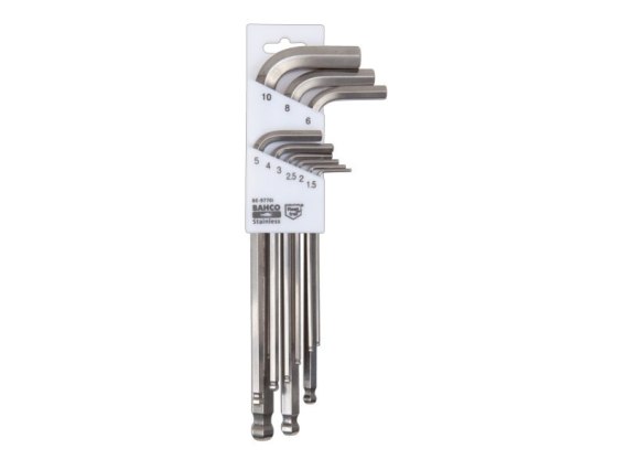 Zestaw długich kluczy imbusowych, nierdzewnych z kulką, metrycznych, 9 szt.