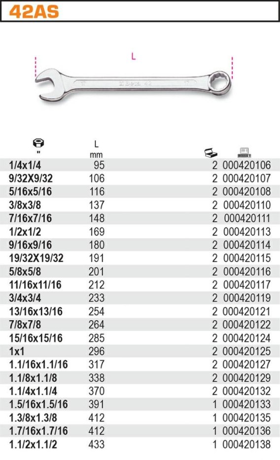 Klucz płasko-oczkowy, calowy BETA 42AS/1.1/16