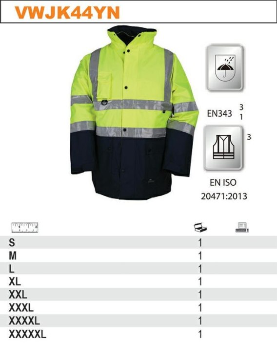 2. Kurtka zewnętrzna ostrzegawcza z podpinką z rękawami.