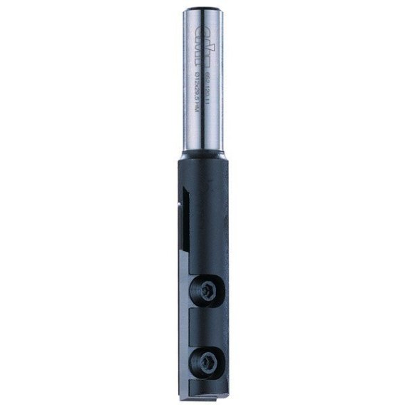 Frez prosty Z=1 na wymienne płytki mocowane za pomocą śrubek typu Torx. Możliwość frezowania i wiercenia w płycie wiórowej i MDF. Do używania na frezarkach ręcznych.