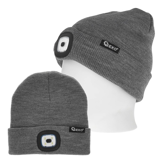 • Czapka zimowa akumulatorowa z lampką LED (szary melanż) (100)