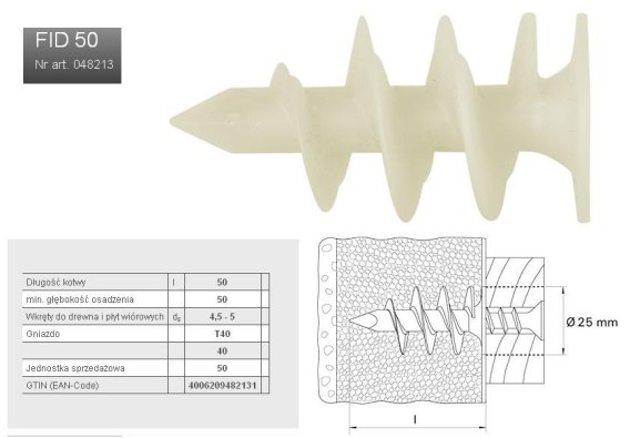 FISHER MOCOWANIE W IZOLACJI FID 50 50szt. DO PŁYT IZOLACYJNYCH (STYROPIAN) FISCHER