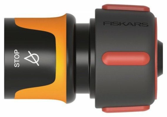 Wewnętrzny mechanizm automatycznie zatrzymuje przepływ wody z chwilą odłączenia przyłączonego urządzenia np. dyszy zraszającej, pistoletu zraszającego czy zraszacza na końcu węża. Zastosowano specjalne punkty SoftGrip, które zapewniają bezpieczną pracę, nawet gdy dłonie są mokre. W porównaniu do metalowych elementów uchwyt jest dużo przyjemniejszy w dotyku, nawet w chłodne dni. Posiada system oznaczenia kolorami dla łatwiejszego przyporządkowania złączki do odpowiednich węży Fiskars. Dzięki uniwersalnemu rozmiarowi jest kompatybilny z produktami innych producentów.