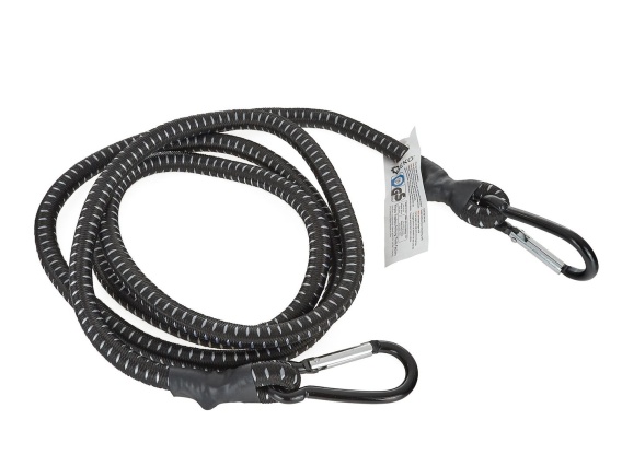 Elastyczna linka służąca do zabezpieczania przed przemieszczaniem różnych towarów podczas transportu. Metalowe karabińczyki są bezpieczne i trwałe, mocują się na przedmiocie bez możliwości przypadkowego odczepienia się.