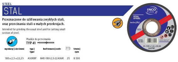 INCOFLEX TARCZA DO METALU 180 x 2,5 x 22,2mm INCOFLEX