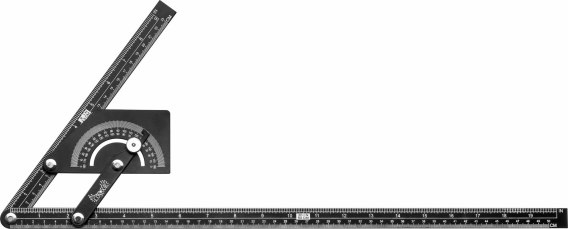 Kątomierz nastawny DREL o wymiarach 230 x 500 mm.