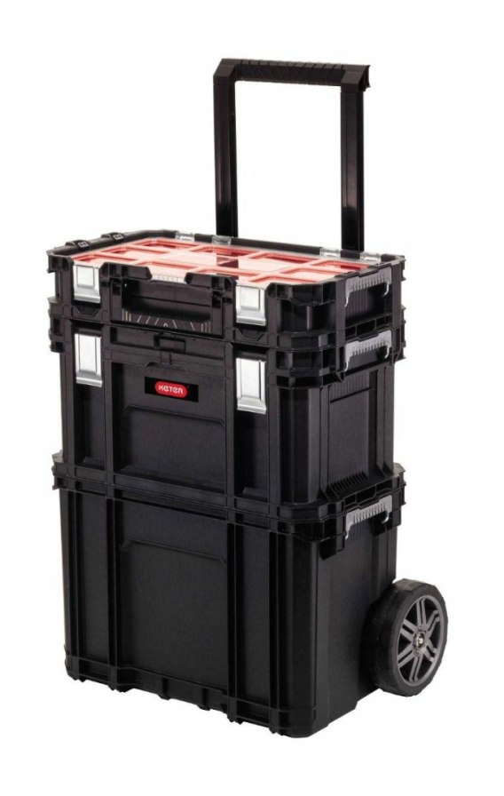 3-częściowy mobilny zestaw skrzynek pozwalający na łatwą organizację i transport narzędzi - idealne rozwiązanie zarówno dla profesjonalistów działających w terenie, jak i właścicieli przydomowych warsztatów.