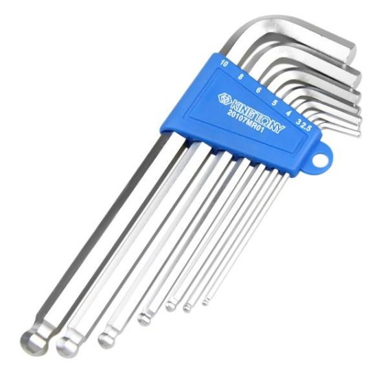 W zestawie znajdują się długie imbusy z serii 1130xxM w rozmiarach 2.5, 3, 4, 5, 6, 8, 10 [mm].
