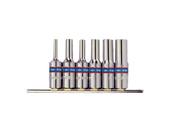 Komplet 6 długich nasadek gwiazdkowych 3/8" na szynie 150mm.