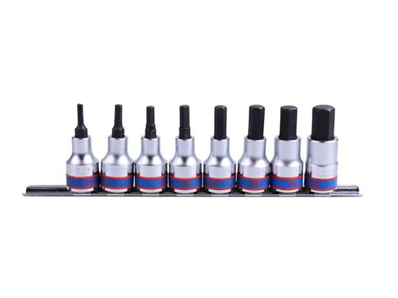 W zestawie szyna 210 mm i nasadki imbusowe z końcówką Hex 3025: H3 , H4 , H5 , H6 , H7 , H8 H10 , H12