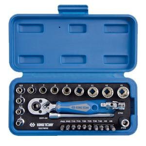 KING TONY ZESTAW NARZĘDZI 1/4" 27cz. NASADKI KRÓTKIE, 12-kąt. 4 - 14mm Z GRZECHOTKĄ I AKCESORIAMI KING TONY