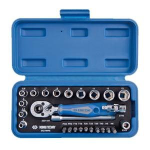 KING TONY ZESTAW NARZĘDZI 1/4" 27cz. NASADKI KRÓTKIE, 6-kąt. 4 - 14mm Z GRZECHOTKĄ I AKCESORIAMI KING TONY
