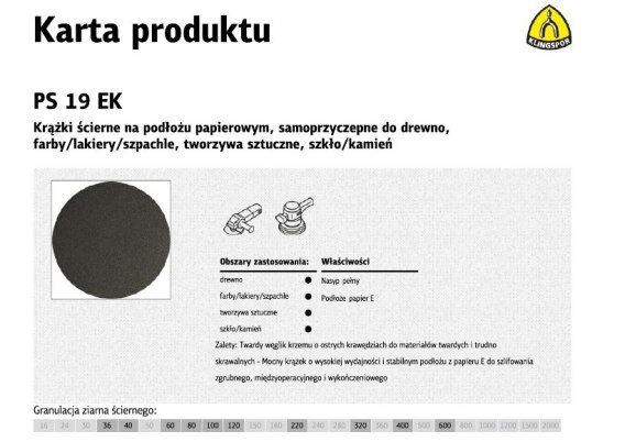 - Mocny krążek o wysokiej wydajności i stabilnym podłożu z papieru E do szlifowania zgrubnego, międzyoperacyjnego i wykończeniowego