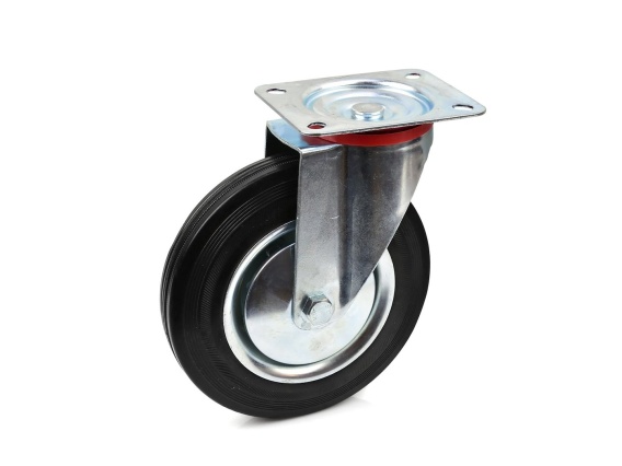 Koło obrotowe o średnicy 200mm. Rdzeń koła (felga) jak i obudowa wykonane zostały ze stali, opona natomiast z wysokiej jakości gumy która poprawia przyczepność koła, a także zapobiega rysowaniu podłoża.