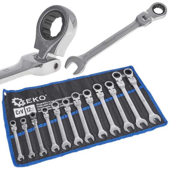 Kpl. kluczy płasko-oczkowych z grzechotką łamanych 12 el. 8-19mm (8)