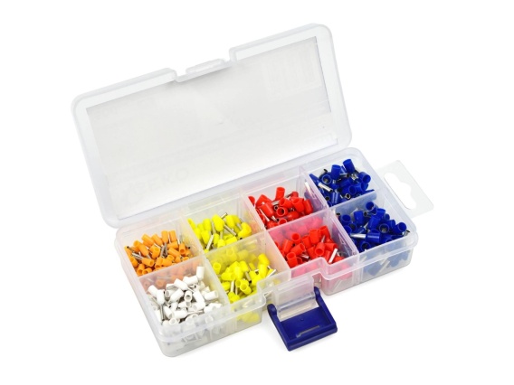 Zestaw tulejek izolowanych przeznaczonych do zakańczania kabli. Tulejki zaciskowe szczególnie przydatne są do wykonywania zakończeń kablowych na przewodach wielodrutowych. Korzystanie z tulejek kablowych gwarantuje solidne utrzymanie w jednym miejscu wszystkich luźnych drucików znajdujących się w przewodach. Znacznie zmniejsza to możliwość wystąpienie zwarcia oraz w dużej mierze ułatwia montaż takiego przewodu w kostce zaciskowej.