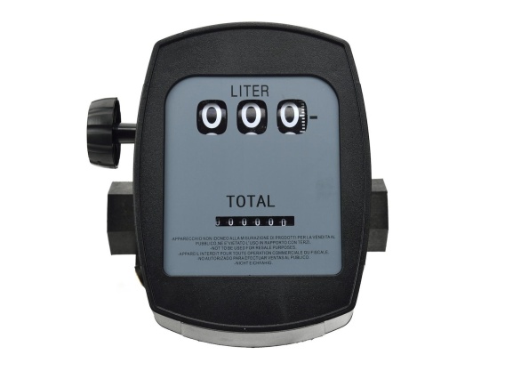 Przepływomierz, licznik mechaniczny pompy elektrycznej mini CPN na 230V. Dostosowany do pomiaru przepływu paliwa i oleju. Posiada dwa liczniki oraz pokrętło do szybkiego zerowania.