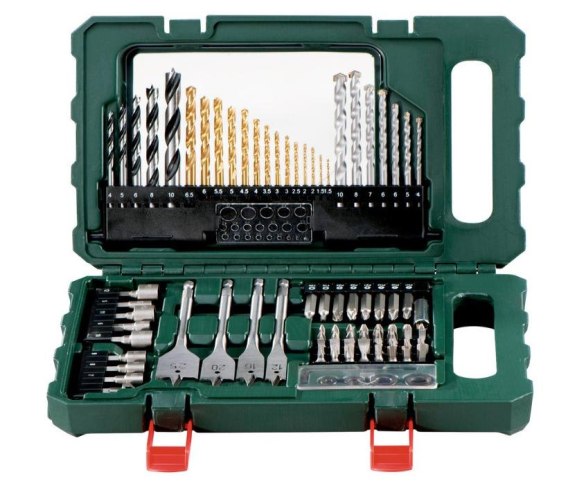 W zestawie znajdują się m.in wiertła i bity ze stali chromowo-wanadowej (S2) z oznaczeniem barwnym umożliwiającym szybkie i łatwe odnalezienie właściwego bitu o wysokiej jakości.