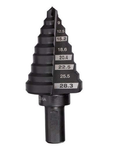 Zalety wierteł stopniowych w porównaniu z wietłami tradycyjnymi: - Jedno wiertło wykonuje otwory o różnej średnicy - Więcej możliwości, a mniej noszenia! - Najlepszy sposób na powiększenie istniejącego otworu. - Rdzeń jest nieskręco