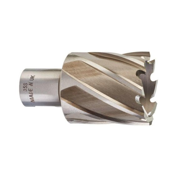 100 % szybsze - Oszczędność czasu możemy osiągnąć dzięki następującym czynnikom: Po pierwsze, frez pierścieniowy tnie materiał tylko na krawędzi, przeciwnie do wiertła krętego, który tnie całkowitą średnicę. Po drugie, dwa agresywne kąty ostre, poprzez krawędź skrawającą zwiększają szybkość wiercenia i zmniejszają opór.