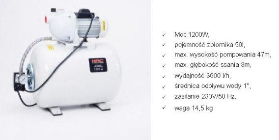 NAC HYDROFOR 1200W ZBIORNIK 50L 3600 l/h NAC