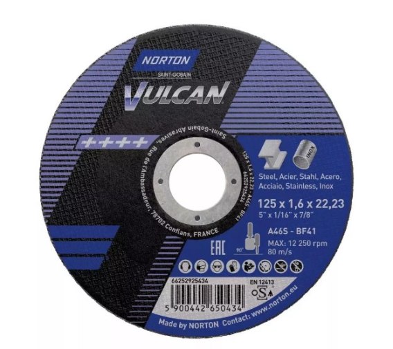 NORTON TARCZA VULCAN DO METALU 125x1.6x22.23-T41 A46S NORTON