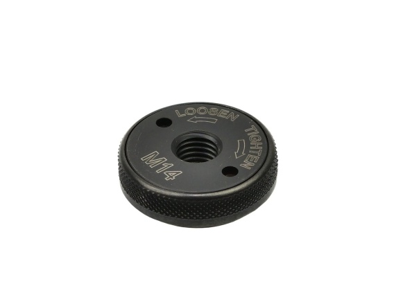 Szybkozaciskowa nakrętka M14 do szlifierek kątowych. Umożliwia szybką, beznarzędziową wymianę tarczy. Pasuje do wszystkich szlifierek wyposażonych we wrzeciono z gwintem M14, niezależnie od średnicy tarczy.