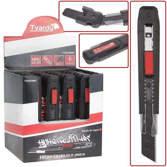 Noż z ostrzem łamanym marki Tvardy, został stworzony z myślą o wygodzie i bezpieczeństwie użytkowania. Wyposażony w 8-segmentowe ostrze łamane wykonane ze stali SK2H, zapewnia niezawodność i trwałość w każdych warunkach. Dodatkowo, korpus wykonany z wytrzymałego tworzywa ABS gwarantuje dużą odporność na uszkodzenia mechaniczne oraz komfort podczas użytkowania.