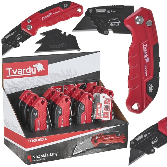 Nożyk składany FASTFOLD z ostrzem trapezowym 60x19x0.6mm SK2H TVARDY - kartonik wystawowy (12/96)