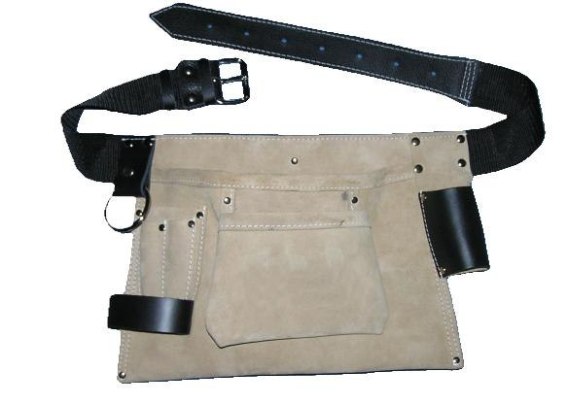 Jednoczęściowy, bardzo trwały podwójnie zszywany i nitowany z kieszeniami i uchwytami na narzędzia.