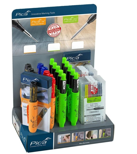Kod produktu 66322 - zawiera znacznik Pica Dry 3030 - 10szt. + wkłady mix grafit/czerwony/żółty 4020 - 10szt., znacznik Pica Ink 150/46 - 5szt, 150/40 - 3szt. 150/41 - 2szt.