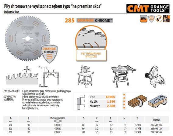 PIŁA UNIWERSALNA CHROMOWANA HM D=300 F=30 Z=96 K=3,2/2,2 CMT