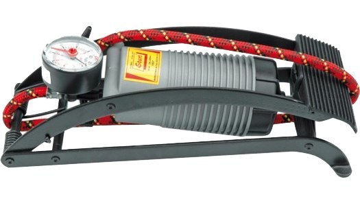 Pompka nożna z precyzyjnym manometrem zgodnym z normą EN 837-1, w klasie dokładności 1,6 o zakresie pomiarowym 0-6 bar, z podziałką 0,1 bar. Długość węża 700 mm.