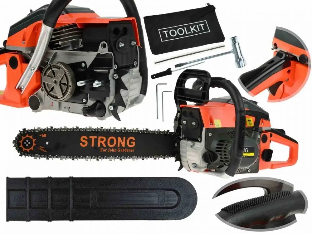 ✅Precyzyjny i Wytrzymały Łańcuch: Dzięki 20-calowemu ostrzu i precyzyjnemu łańcuchowi, ta piła umożliwia szybkie i skuteczne cięcie drewna, gałęzi czy pni. Nie musisz się martwić o zacinanie się - John Gardener działa płynnie i sprawnie.