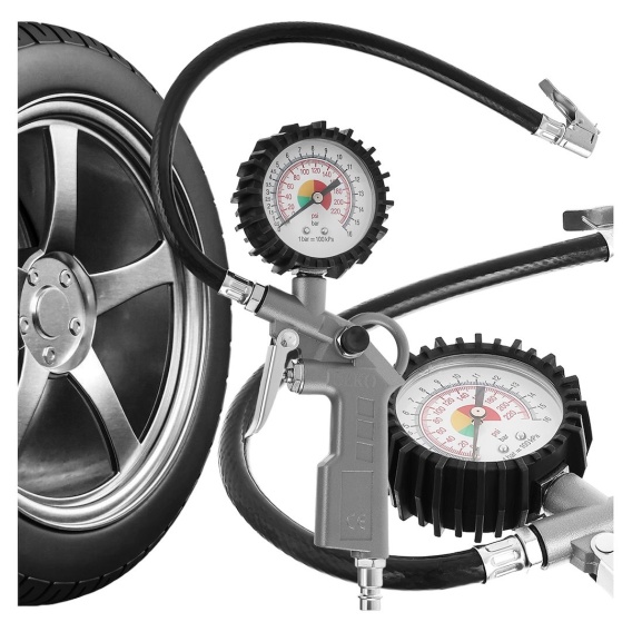 Pistolet z manometrem przeznaczony do pompowania kół.