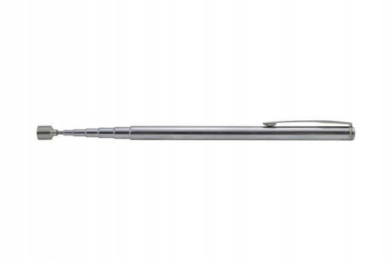 Opis narzędzia: Chwytak magnetyczny teleskopowy umożliwia wydobycie z miejsc trudno dostępnych różnego rodzaju elementów stalowych (nakrętki, klucze, śruby). Po złożeniu chwytak ma kształt i wielkość długopisu.