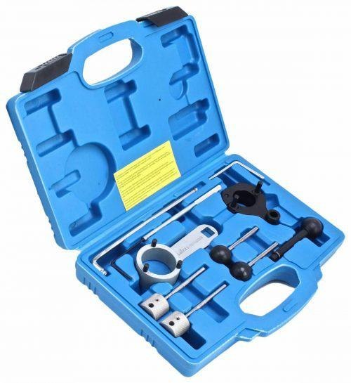 Estaw przystosowany do blokowania wału korbowego, koła pasowego wałka rozrządu i pompy paliwa w odpowiednim położeniu przystosowanym do demontażu i wymiany paska lub wałka rozrządu.