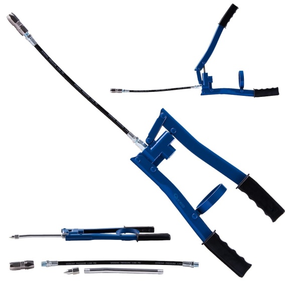 Ergonomiczny uchwyt: Dwuręczny uchwyt zwiększa komfort użytkowania i umożliwia precyzyjną kontrolę podczas aplikacji smaru.