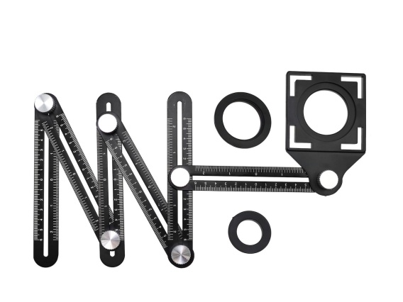 Uniwersalny przyrząd przeznaczony do precyzyjnego wyznaczania miejsca wykonania otworu. Z powodzeniem może być stosowany na wszystkich powierzchniach płaskich. Niezastąpiony podczas prac glazurniczych oraz budowlanych.