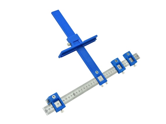 Szablon stolarski z prowadnicą, przeznaczony do wykonywania precyzyjnych otworów w drewnie, płytach MDF, płytach wiórowych, tworzywach sztucznych oraz metalu. Wyposażony w dwie prowadnice, prowadnica wykonana z wysokiej jakości tworzywa używana jest do ustalenia odległości otworów od krawędzi obrabianego elementu, prowadnica aluminiowa natomiast przeznaczona jest precyzyjnego ustalenia rozstawu otworów.