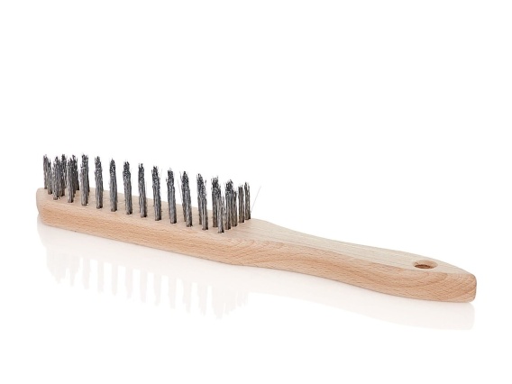 Szczotka przeznaczona do usuwania rdzy oraz innych zanieczyszczeń z metalowych powierzchni. Wykonana z wysokiej jakości drutu stalowego. Drewniana, ergonomiczna rękojeść o dużej odporności na uszkodzenia mechaniczne.