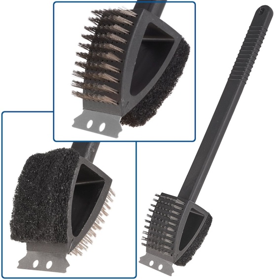 Dzięki konstrukcji 3w1, ta szczotka umożliwia kompleksowe usuwanie zanieczyszczeń z powierzchni grilla, zapewniając czystość i higienę podczas każdej sesji grillowania.