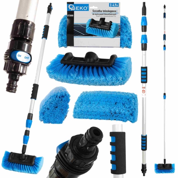 Czy chcesz mieć czyste i sprawne panele fotowoltaiczne bez wysiłku i ryzyka? Jeśli tak, to potrzebujesz szczotki teleskopowej do mycia paneli fotowoltaicznych!Ta wyjątkowa szczotka pozwala Ci dotrzeć do każdego zakamarka Twoich paneli, dzięki możliwości rozciągania się od 2 do 4,9 metra. Nie musisz się martwić o zarysowania lub uszkodzenia paneli, ponieważ szczotka ma miękkie i gęste włosie, które skutecznie usuwa brud i kurz.