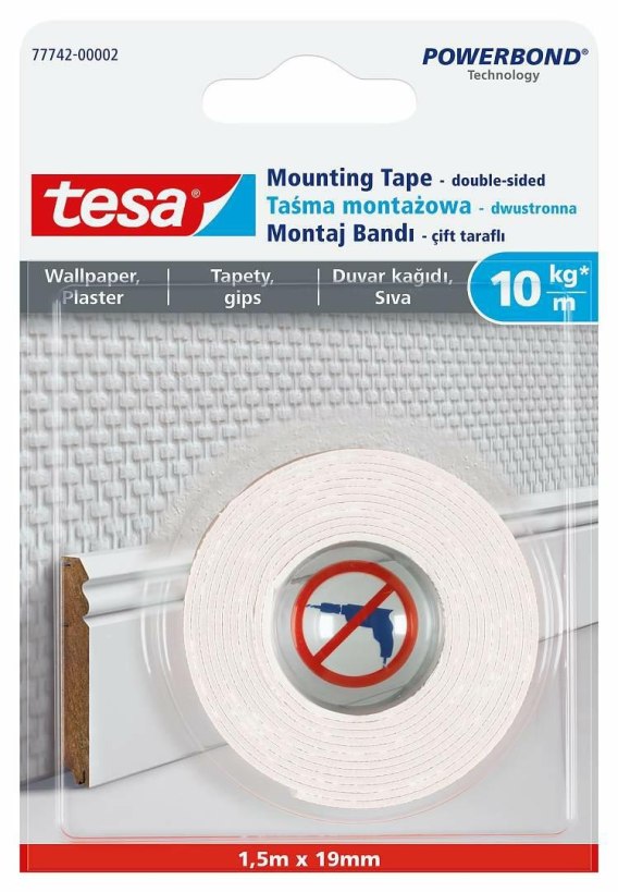 TESA TAŚMA DWUSTRONNA POWERBOND 1,5m x 19mm NA TAPETY I TYNK TESA