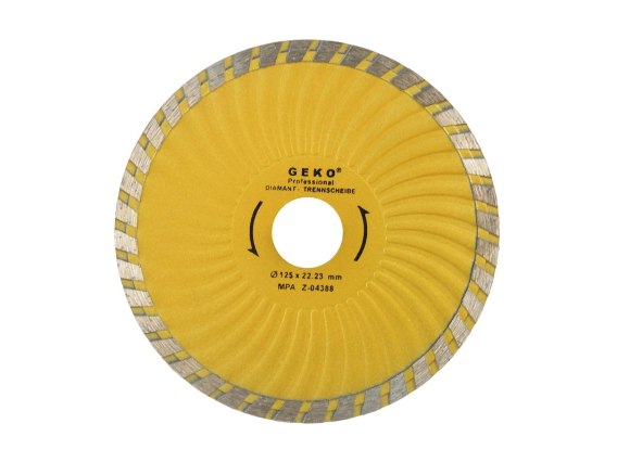 Profesjonalna tarcza diamentowa turbo plus ;do cięcia granitu, marmuru, piaskowca, cegły, pustaków, kamienia wapiennego oraz innych bloków z kamienia. Stały kontakt tarczy z ciętym materiałem zapewnia gładsze cięcie w porównaniu z tarczami o profilu segmentowym. ;Pofalowana struktura rdzenia pomaga usuwać ;odpady ;oraz chłodzić tarczę, a tym samym zwiększa jej żywotność.