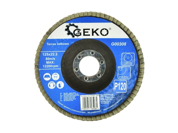 Tarcze listkowe (lamelkowe tzw. lamelki) firmy GEKO charakteryzują się niezawodnością oraz długą żywotnością. Zaprojektowane do użytku ze wszystkimi szlifierkami kątowymi 125 mm. Idealnie nadają się do szlifowania, usuwania materiału, fazowania krawędzi, oczyszczania i wykańczania powierzchni.