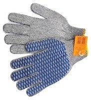 Rękawice bawełniane w części chwytnej powlekane PVC w kształt siatki, co zapewnia dużą chwytność i odporność na ścieranie.
