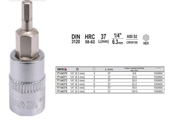 YATO KLUCZ TRZPIENIOWY IMBUSOWY/HEX 1/4" 6x37mm YATO