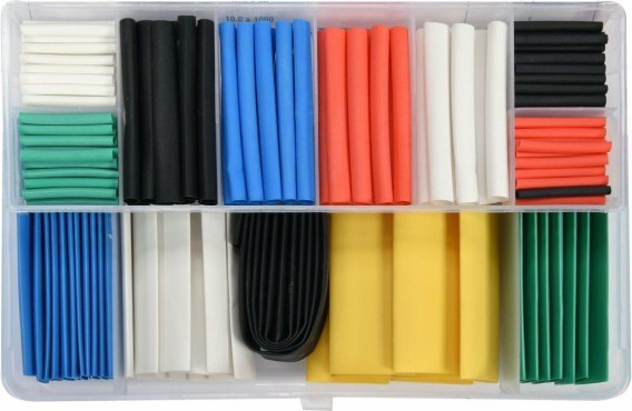 Zestaw koszulek termokurczliwych. Zawartość opakowania to 171 sztuk koszulek o różnych średnicach, długościach i kolorze. Całość umieszczona w wygodnym opakowaniu typu "sortownik".